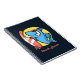 Ein frech blauer Hai lehnt sich an ein Surfbrett mit Korallenriff und einer gelben Sonne dahinter. "Beach, bitte" ist unten in Pachy-Skript geschrieben. Der lebendige Pop von Blues und Korallen gegen den gelben Kreis, der diesem Design ein helles, sonniges Strandgefühl verleiht.