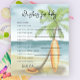 Baby an Bord! Baby Dusche Einladung - perfekt für eine Sommerdusche. Thema Strand. Das Aquarelldesign besticht durch eine Ozean- und Strandlandschaft mit Surfbrett, Palmen und Sommerhut.