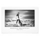 Erweiterung des Fotos mit einem Schwarz-Weiß-Bild eines Surfers, der auf die Super Tubes in Jeffreys Bay fährt, während er die Felsen mit einem Surfbrett in der Hand überquert, während er eine Tauchsuite trägt, Südafrika.