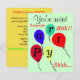 Surprise 40e anniversaire ou toute année importante. Ballons d'anniversaire volant colorés en rouge orange bleu vert jaune. Joli arrière - plan vert menthe. Des lettres de fête sont écrites à travers des ballons. Parfait anniversaire invitations amusantes pour 40ème anniversaire ou TOUT autre événement important Anniversaire pour homme ou femme! Backside a la date de la fête et les détails de l'emplacement sur un arrière - plan jaune. Oeuvre originale Design par TamiraZDesigns.