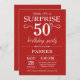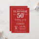 Invitation surprise 50e anniversaire avec Arrière - plan rouge. Anniversaire adulte. Hommes ou femmes Anniversaire Invitation. 13e 15e 16e 18e 20e 21e 30e 40e 50e 60e 70e 80e 90e 100e, n'importe quel âge. Pour plus de personnalisation, cliquez sur le bouton "Customiser" et utilisez notre outil de conception pour modifier ce modèle.