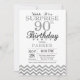 Surprise 90e anniversaire Invitation avec Parties scintillant d'argent Chevron. Parties scintillant noire et argent. Anniversaire adulte. Homme ou Femmes Anniversaire Invitation. Pour plus de personnalisation, cliquez sur le bouton "Customiser" et utilisez notre outil de conception pour modifier ce modèle.
