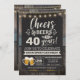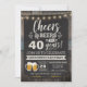 Surprise Cheers and Beers 40th Birthday Invitation avec plateau de craie et lettrage avec âge personnaliser.