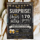 Surprise Cheers and Beers 70th Birthday Invitation avec plateau de craie et lettrage avec âge personnaliser.
