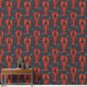 Surreal Animal Design mit Hummer Muster im Blockdruckstil. Vintage Tiere Tapeten mit roten Hummern.