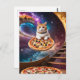 Surreal Cat on Flying Pizza Postkarte