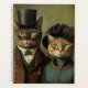 Surreales Portrait eines Katzenpaares, das in extravaganten Kleidern gekleidet ist. Ein lustiger Planer für eine Katzenfrau oder einen Katzenjäger-Typ. Das gleiche Bild auf Vorder- und Rückseite. AI unterstützte Grafik, die mit kommerziellem Einsatz erworben wurde. Artwork: RavenPrintableDesign
