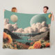 Surreal Mountain Landscape with Planets and Clouds Fleecedecke