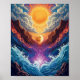 Immerse your space in mystical balance with this surreal Sun and Moon Abstract Landscape poster. This vibrant digital artwork unites the five elements—earth, air, fire, water, and spirit—through rich, symbolic imagery: mountains for earth, clouds for air, flames for fire, waves for water, and radiant auras for spirit. With a bold tarot-inspired style and clean, harmonious composition, this piece radiates energy, balance, and transformation. Perfect for spiritual art lovers, abstract art collectors, or anyone seeking an inspiring, high-impact wall statement.