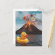 Die KI erzeugte Kunst einer surrealen Gummiente vor einem Vulkan, der Blume und Lava aufbläst, die eigentlich nur Blume sein sollte, aber AI hatte einen eigenen Geist und fügte die Lava sowieso hinzu