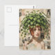 Eine schöne Frau mit einer Pflanze in einem Topf als Kopf, surreale Fantasy-Kunst im Stil einer Mixed-Media-Collage