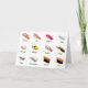 Coole Sushi-Grußkarte mit verschiedenen Sushi-Typen und deren Namen. Ideal für jeden Fan von Sushi oder der japanischen Gastronomie.