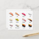 Coole Sushi-Postkarte mit verschiedenen Sushi-Typen und deren Namen. Ideal für jeden Fan von Sushi oder der japanischen Gastronomie.