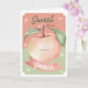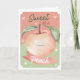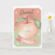 Versenden Sie ein bisschen Süße mit dieser bezaubernden Grußkarte im Wasserfarb-Stil „Süß wie ein Pfirsich“. Mit einer handgemalten Pfirsich-Illustration in sanften rosafarbenen Tönen, zarten grünen Blättern und einem fröhlichen lächelnden Gesicht bringt dieses Design Wärme und Charme in jeden Anlass.