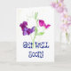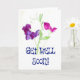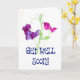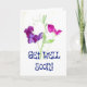 Eine hübsche "Get Well"-Karte mit rosa und lila süßen Erbsen aus einem Aquarellbild von Judy Adamson. Die Schrift ist dunkelblau und die Innenseite wird für Ihre eigene Nachricht leer verlassen. Siehe auch passende Geschenke und Bekleidung.