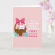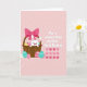 Entworfen mit einer weichen Pastellpalette zeigt diese Karte einen rundgesichtigen weißen Hasen, der aus einem geflochtenen Korb mit einem sanften, liebevollen Blick herauslugt 🐰. Um den Korb herum gruppieren sich dekorierte Eier in freundlicher Feier, verziert mit Punkten, Zickzacklinien und welligen Linien in Gelb, Fuchsia, Türkis und Lavendel. Eine große rosa Schleife umwickelt den Korbgriff und fügt eine süße, romantische Note hinzu, als ob es ein Geschenk für jemanden Nahestehendes wäre. Auf der rechten Seite erscheint die Nachricht „Für einen süßen Kuss zu diesem ersten Ostern.“ in fetter weißer Schrift und sticht klar gegen den Hintergrund hervor. Unter den Worten deutet eine ordentliche Reihe ineinandergreifender Herzformen in verschiedenen Rosatönen auf Nähe und einen gemeinsamen Moment hin 🌷. Der rosafarbene Hintergrund trägt schwache diagonale Streifen, die die Szene sanft halten und den Fokus auf den Hasen und die Eier lenken. Feine Texturdetails sind im