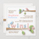 Zwei süße kleine Birdies hocken auf diesem Entwurf unter blühenden Niederlassungen des Blätter mit den rosa und blauen Blüten. Rosa und Blau "Zwillinge!" hat einen genähten Effekt und Elemente werden für einen Maßblick beschattet. Sehr süß - und lässt Ihre Gäste wissen, dass ein kleines Mädchen und ein kleiner Junge auf der Weise sind!