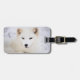 Ein niedlicher, weißer, arktischer Fuchs, der sich im Schnee ruht. Das Tier hat weiße Felle und braune Augen und sieht dich an. Ein echter Diva! Vorlage für Ihre Kontaktinformationen auf der Rückseite.