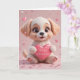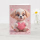 Süßer Valentinstag mit einem niedlichen Welpen, der ein Herz hält. Perfekt für Hunde-Liebhaber und süße romantische Nachrichten.