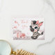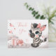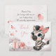 Süße Dankeskarte mit süßem kleinen weiblichen Zebra, das eine süße rosa Schleife mit einigen Herzen trägt und auf Wolken sitzt