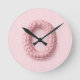 Süßes rosa O Monogramm Anfangsbuchstabe gehäkelter Runde Wanduhr