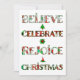 Verbreiten Sie Weihnachtsstimmung mit diesem süßen gemusterten Design mit "Glaube, Feiere, Freue dich, Weihnachten" in festlicher Typografie, gefüllt mit roten und grünen Weihnachtsmotiven. Jeder Buchstabe zeigt Ornamente, Weihnachtsbäume, Weihnachtssterne und klassische saisonale Muster, die Freude und Wärme in Ihre Feier bringen.
