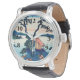 Uhr, Vintage Männeruhr mit schwarzem Lederarmband