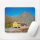 Küste mit Bergen und farbenfrohen Holzhäusern in Svolvaer, Lofoten, Norwegen