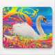 Ein Schwan nistet auf farbenfrohen Pflanze