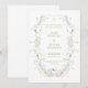 The invitation showcases a harmonious blend of soft pastel hues, including gentle pinks, blues, and greens. This soothing color scheme evokes tranquility and sophistication, beautifully complementing the floral and greenery elements.