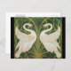 Eine Postkarte mit dem Wallpaper-Design von Walter Crane (1845-1915), Swans, Rush & Iris (1875). Ein englischer Künstler aus der Bewegung für Kunst und Handwerk. Er produzierte viele dekorative Gemälde und Illustrationen für Kinderbücher. Eine schöne Darstellung von zwei weißen Schwänen auf grünem Hintergrund.