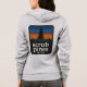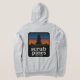 Sweat à capuche zippé gris Bella Canvas pour femmes, pins et lacs de Medford sur la poche avant, logo du coucher de soleil au dos