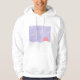 Le sweat - shirt à capuche blanc de cet homme est conçu avec ma représentation d'un coucher de soleil orange derrière une montagne enneigée.