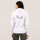 Le sweat - shirt à capuche zip avant de la mariée est affiché en blanc avec un texte Bride imprimé dans la couleur Navy sur l'avant et l'arrière. Customisez cet objet ou achetez tel quel.