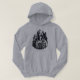 Ceci est une illustration vectorielle monochrome d'un homme portant une beanie, des lunettes de soleil et une veste à capuchon. Il a une expression déterminée et se tient dans un contexte urbain. Sa tenue est esthétique. Le dessin comporte également un graphique crânien sur sa chemise intérieure, ajoutant une touche de bord et de rébellion.
