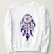 Atrapasueños Amatista es sin duda un Bonito diseño místico espiritual, plumas ligeras en tonos violeta profundo, gemas de amatista tallada en forma de corazón, inspirada en el arte místico chamánico y la conexión con los sueños. Estilo boho chic espiritual, con paleta de tonos vibrantes profundos. Ilustración en acuarela digital, ideal para mujeres que visten con intención.