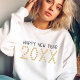 Noir et or heureux sweatshirt blanc de la nouvelle année. Personnalisez-le en changeant l'année. Idéal pour une nouvelle année de fête ou d'événement.