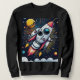 Un vaisseau-fusée de style rétro s'enfonce dans un cosmos coloré et étoilé. Il est conçu avec un grand regard et un visage amical, ajoutant une touche de fantaisie à la scène. Le sentier d'échappement enflammé de la fusée et les planètes vibrantes de l'arrière - plan créent un sentiment de mouvement dynamique et d'aventure.