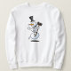 Dessin drôle d'un bonhomme de neige de danse ayant une partie d'hiver dans la neige.