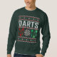 Chandail de Noël moche. Si vous avez une fascination pour les fléchettes, alors c'est le pull de Noël pour les fléchettes pour vous! Tableau noir, lanceurs, flèches, tungstène.