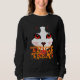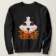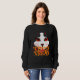 Un chat en tuxedo noir et blanc avec des yeux rouges, des cornes, des crocs et des mots "Trick or Treat" pour le plaisir d'Halloween. Art de Margaret Loftin Whiting.
