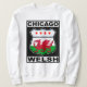 Design gallois de Chicago, dans le style d'un panneau de route cool américain. Le texte de Chicago Welsh est en haut et en bas, avec le drapeau de la ville de Chicago et le drapeau du Pays de Galles à l'intérieur du panneau de route. Idéal pour les Chicagoans d'origine galloise, et pour les anciens dans la ville venteuse.