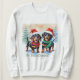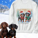 Ce sweatshirt super mignon voit deux adorables chiots en dachshund dans la neige. Les petits chiens ont l'air festifs avec des chapeaux de Père Noël et des foulards en rouge, blanc et vert. L'image est sous la légende "Noël des chiots". Le top est sûr de lever un sourire en période de fêtes, et il fait un cadeau de Noël idéal.