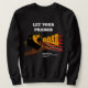 Chrétien élégant PRAISES Lion ROAR unisex sweatshirt, avec TEXTE PERSONNALISABLE, basé sur le verset de la Bible du Psaume 47:1 - 'Criez à Dieu avec la voix du triomphe'. Le dessin montre la tête grinçante d'un lion, et le libellé LET YOUR PRAISES ROAR. Dans l'arrière - plan sont des staves musicales. Les couleurs principales sont le rouge, le jaune et le blanc. En bas, j'ai mis le verset Écriture pour le Psaume 47:1 qui est CUSTOMIZABLE afin que vous puissiez ajouter votre nom, le nom de votre groupe ou équipe de culte, votre verset biblique préféré ou créer votre propre texte. Ou vous pouvez simplement supprimer ce texte. Ce serait un grand cadeau pour tout chrétien qui aime la guerre dans la louange et le culte.