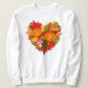 Chemise d'automne confortable avec un coeur lumineux créé à l'aide de citrouilles, feuilles d'automne, glands, baies et tabouret.