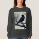 Sweatshirt in a black-and-white illustration featuring a sleek black crow perched on a gnarled, leafless branch. The bird's detailed feathers contrast sharply with the stark, skeletal tree limbs, creating a dramatic composition.