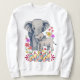Une mère d'éléphant avec son mollet amoureux entouré de fleurs