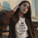 Créez votre propre design de texte "Conserver le calme et votre texte" avec une couronne noire. С о з а с Typographie noire classique contre un sweatshirt blanc.