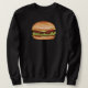 L'illustration de Destei d'un hamburger qui a un pain aux graines de sésame garni de fromage, laitue, bœuf, tomate, ketchup et pickles.