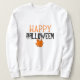 Happy Halloween sweatshirt Famille moderne assortie Halloween design caractéristiques "Happy Halloween" texte en orange et blanc avec un petit accent fantôme. Commandez pour chaque membre de votre équipage.